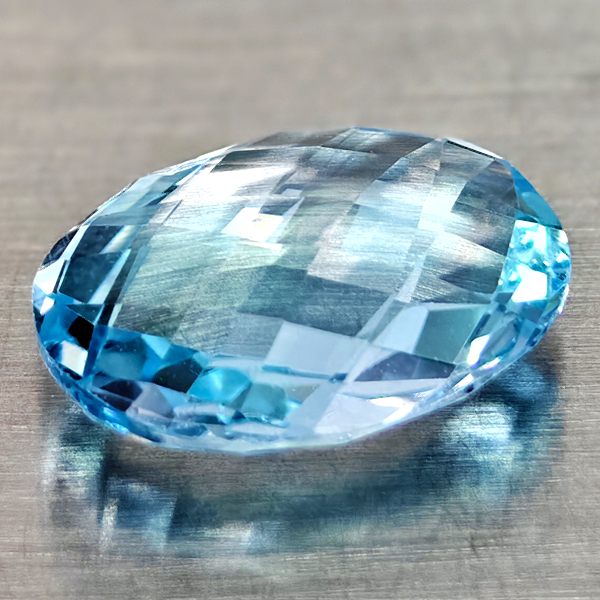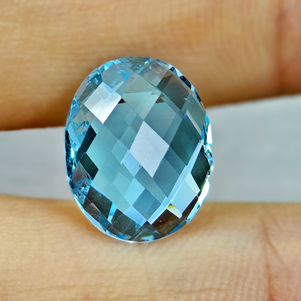 Natural Swiss Blue Topaz 3.26 Ct. Oval Double Checkerboard Cut 11.1 x 9.2 Mm