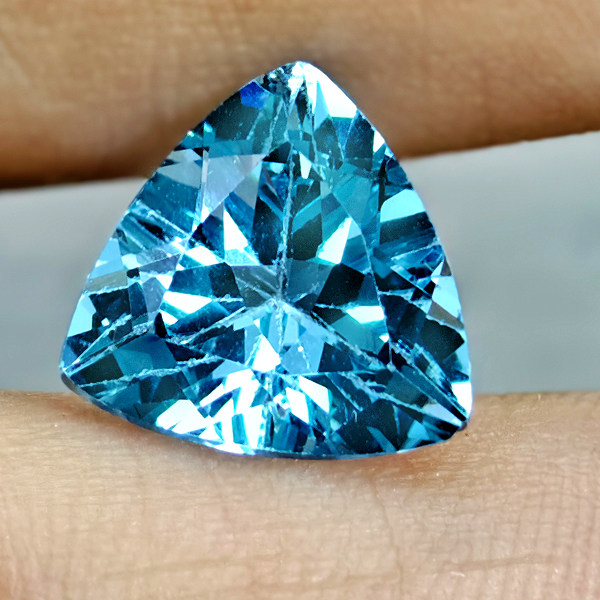 Natural Swiss Blue Topaz 4.16 Ct. Trilliant Shape 10.4 Mm Gemstone From Brazil