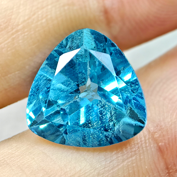 Natural Swiss Blue Topaz 7.88 Ct. Trilliant Shape 12 Mm Gemstone From Brazil