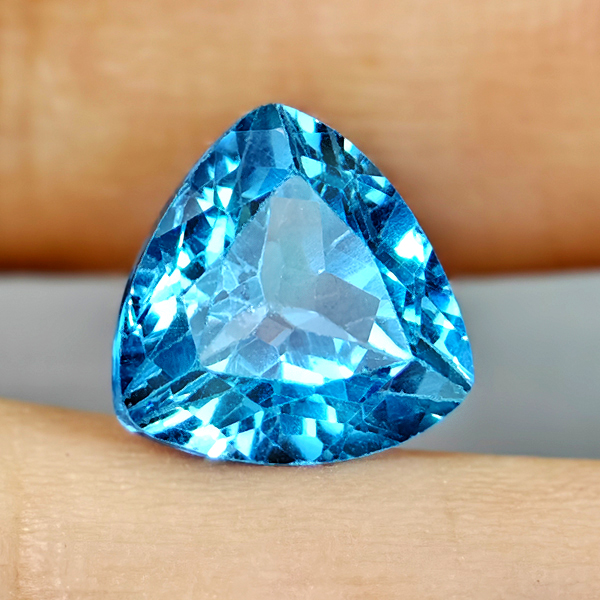 Natural Swiss Blue Topaz 3.61 Ct. Trilliant Shape 9.1 Mm Gemstone From Brazil