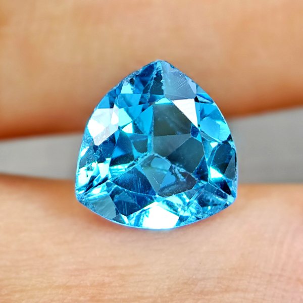 Natural Swiss Blue Topaz 2.18 Ct. Trilliant Shape 8.8 Mm Gemstone From Brazil