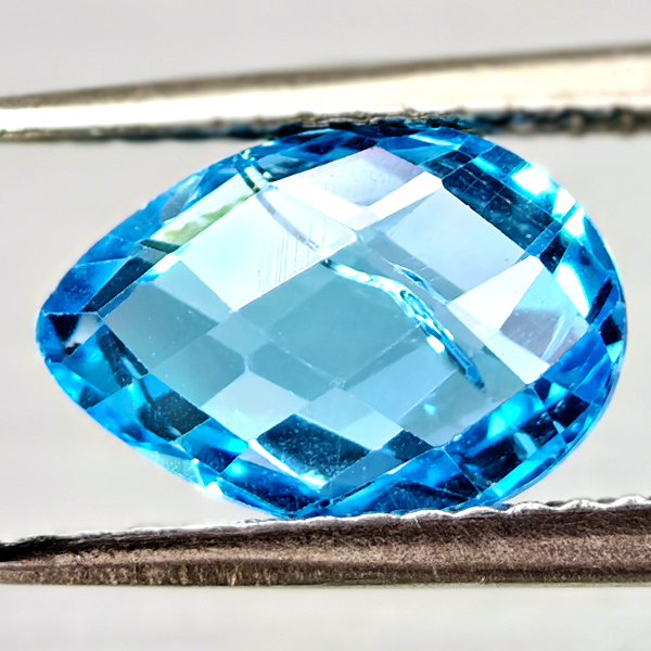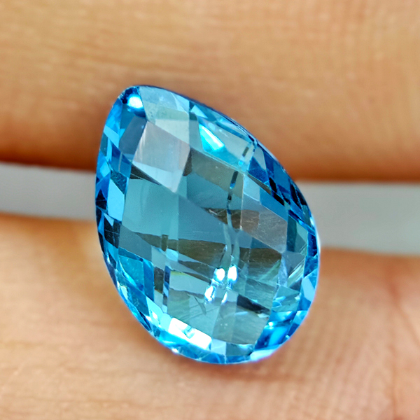 Natural Swiss Blue Topaz 2.35 Ct. Pear Double Checkerboard Cut 9.9 x 6.9 Mm Gems