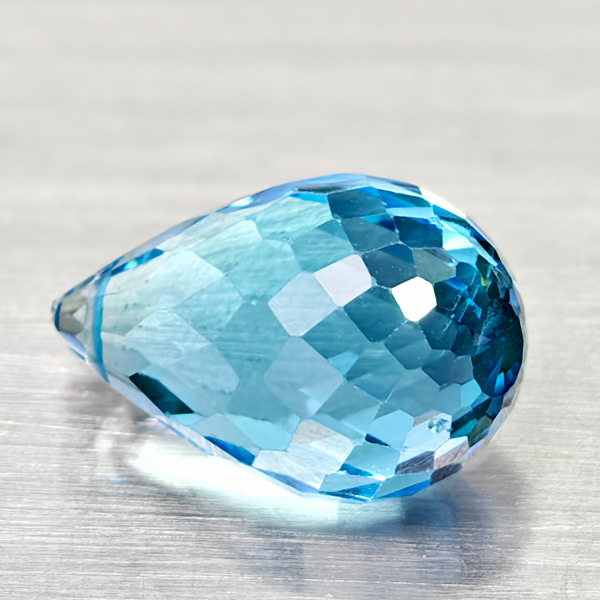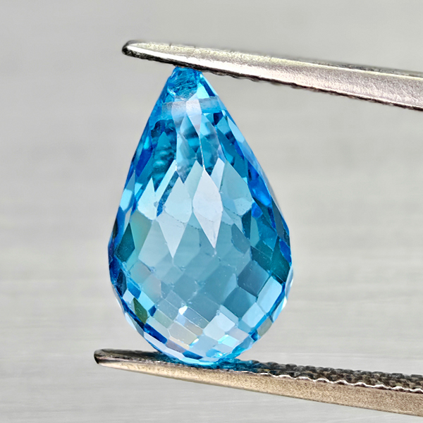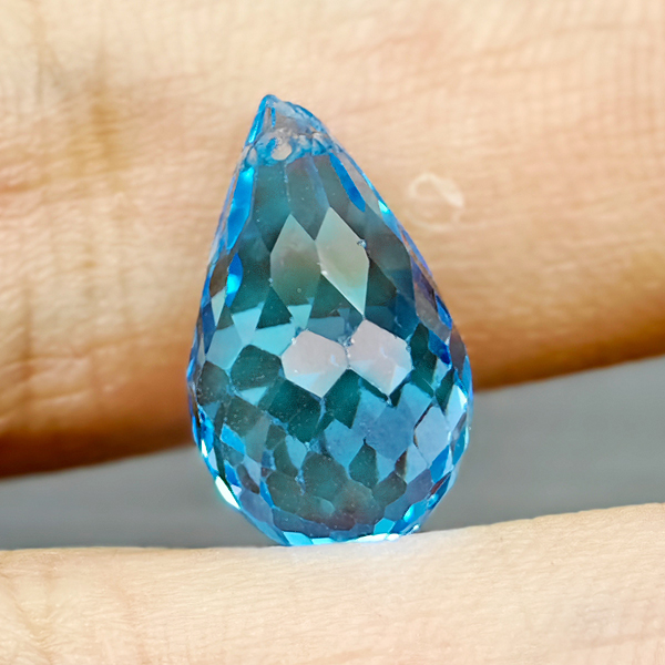 Natural Swiss Blue Topaz 6.59 Ct. Briolette with Drilled Cut 13.4 x 7.8 Mm Gems