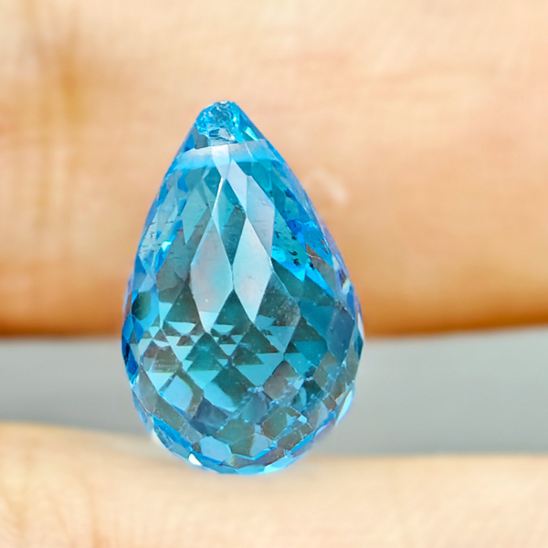 Natural Swiss Blue Topaz 6.97 Ct. Briolette with Drilled 12.9 x 8.3 Mm Gemstone