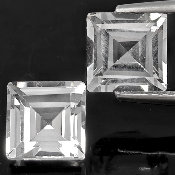 Natural White Topaz 2.94 Ct. 2 Pcs. Square Shape 6.1 Mm Gemstones From Brazil