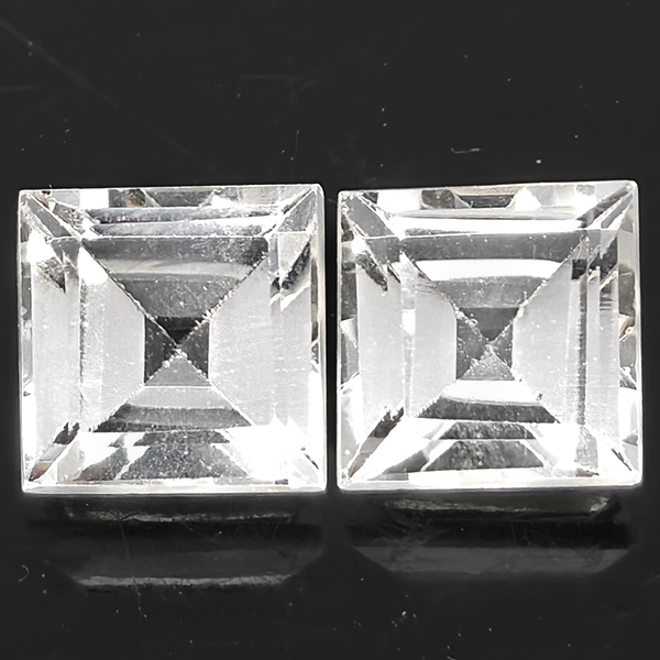 Natural White Topaz 3.03 Ct. 2 Pcs. Square Shape 6.2 Mm Gemstones From Brazil