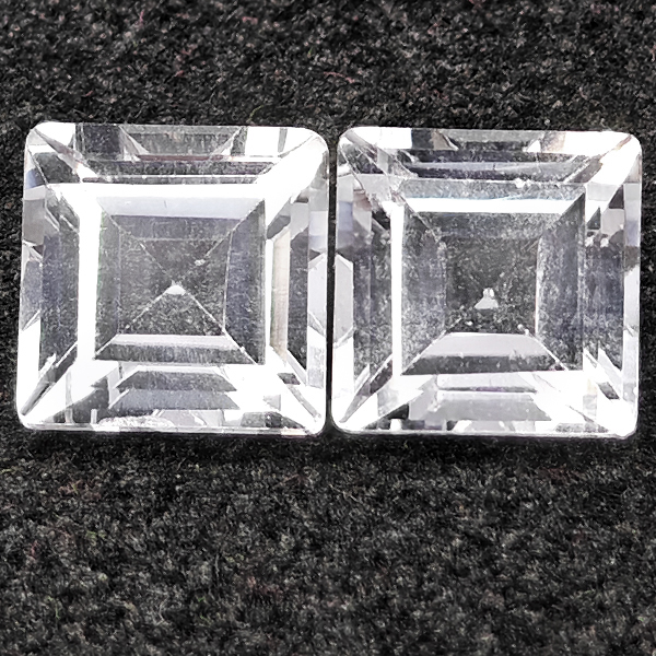 Natural White Topaz 2.86 Ct. 2 Pcs. Square Shape 6.1 Mm Gemstones From Brazil