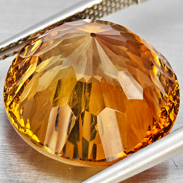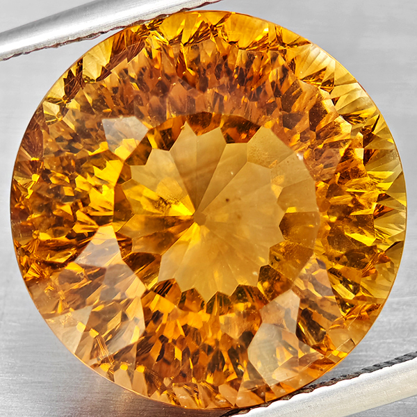 Natural Imperial Topaz 16.75 Ct. Round Concave Cut 15 Mm Gemstone From Brazil