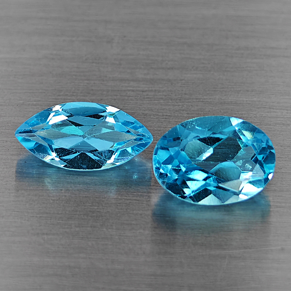 Natural Swiss Blue Topaz 1.66 Ct. 2 Pcs Mixed Shape 7.2 x 5.2 Mm Gemstone From Brazil