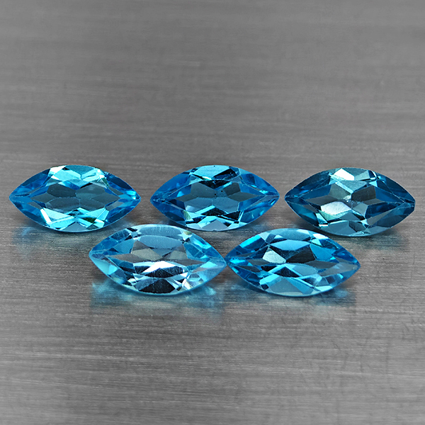 Natural Swiss Blue Topaz 6.02 Ct. 5 Pcs Marquise Shape 10 x 5.2 Mm Gemstone From Brazil