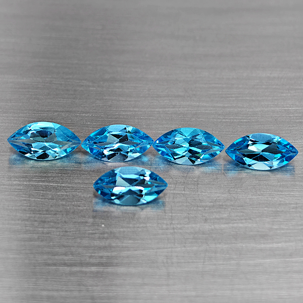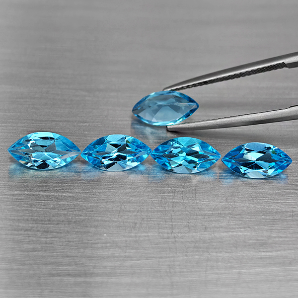 Natural Swiss Blue Topaz 6.13 Ct. 5 Pcs Marquise Shape 10 x 5.2 Mm Gemstone From Brazil