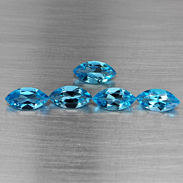 Natural Swiss Blue Topaz 6.20 Ct. 5 Pcs Marquise Shape 9.9 x 5.2 Mm Gemstone From Brazil