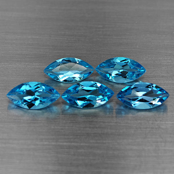 Natural Swiss Blue Topaz 7.46 Ct. 5 Pcs Marquise Shape 10 x 5.3 Mm Gemstone From Brazil
