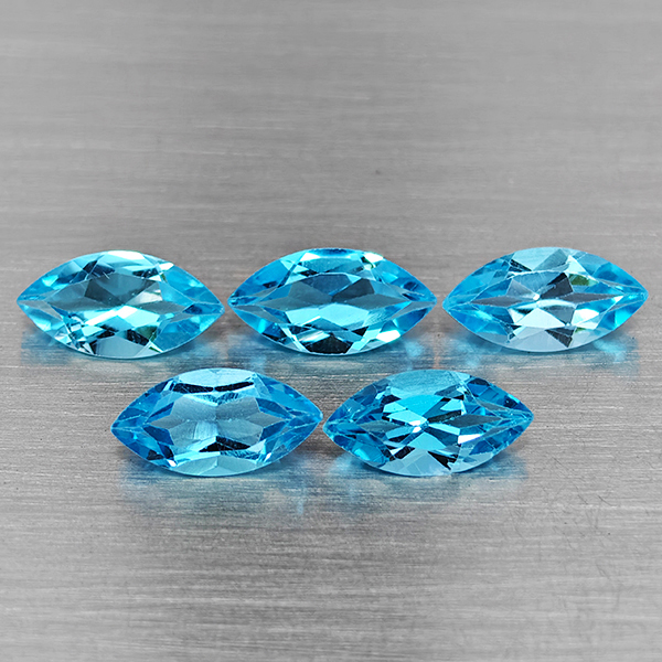 Natural Swiss Blue Topaz 7.17 Ct. 5 Pcs Marquise Shape 10 x 5 Mm Gemstone From Brazil