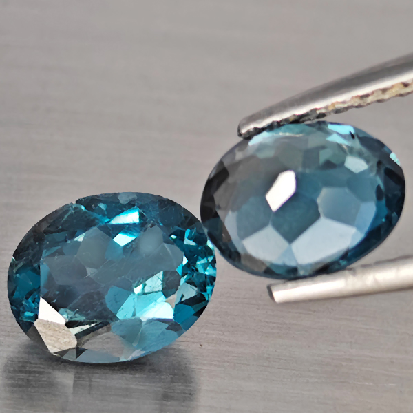 Natural London Blue Topaz 4.68 Ct. 2 Pcs Oval Shape 9.1 x 7.1 Mm Gemstones From Brazil