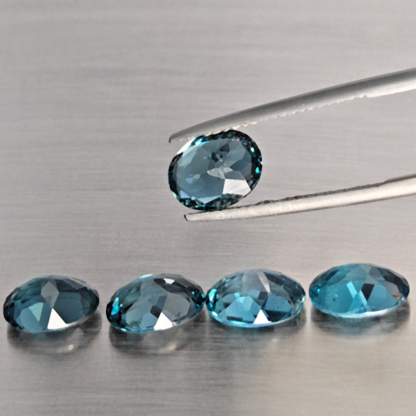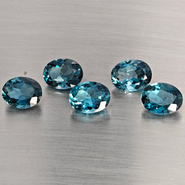 Natural London Blue Topaz 9.93 Ct 5 Pcs Oval Shape 9 x 7.2 Mm Gemstones From Brazil