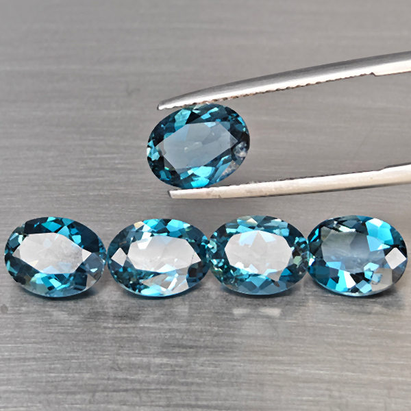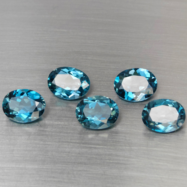 Natural London Blue Topaz 10.19 Ct 5 Pcs Oval Shape 9.1 x 7 Mm Gemstones From Brazil