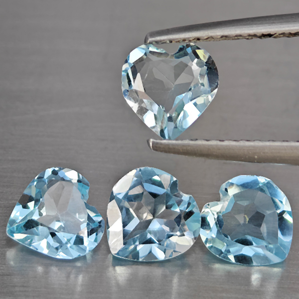 Natural Baby Blue Topaz 2.90 Ct. 4 Pcs Heart Shape 6.3 Mm Gemstone from Brazil