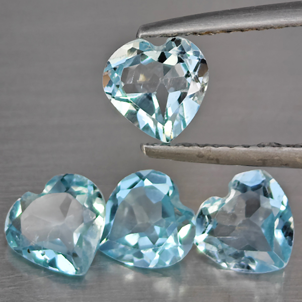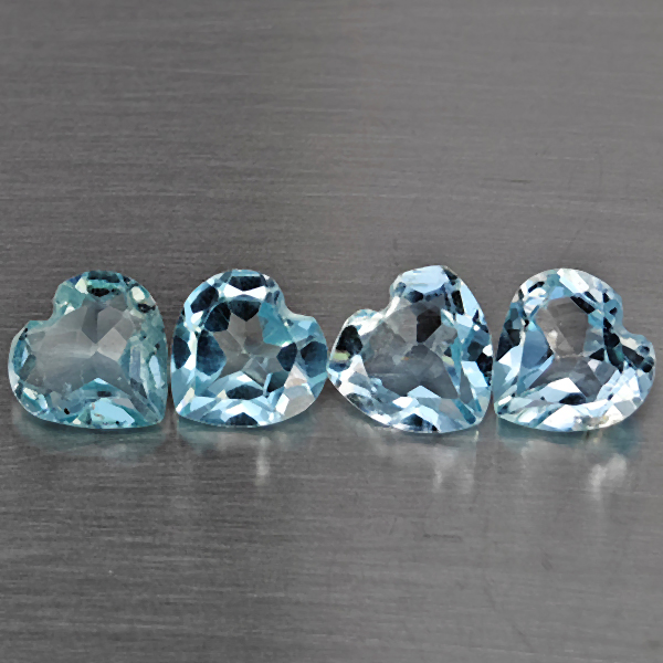 Natural Baby Blue Topaz 3.50 Ct. 4 Pcs Heart Shape 6.4 Mm Gemstone from Brazil