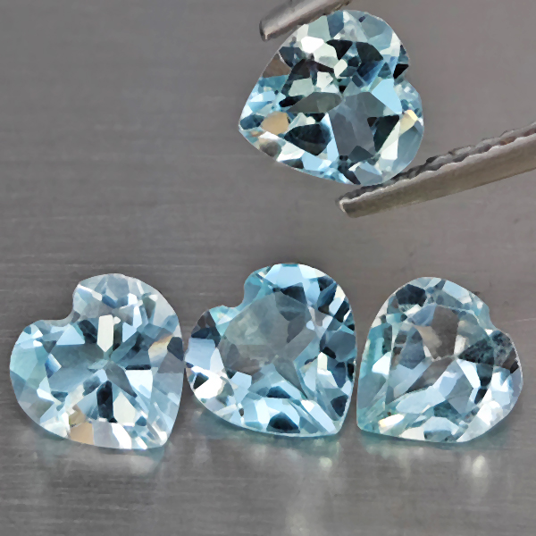 Natural Baby Blue Topaz 3.03 Ct. 4 Pcs Heart Shape 6.2 Mm Gemstone from Brazil