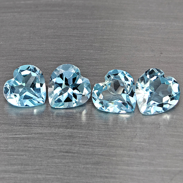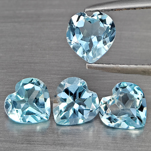 Natural Baby Blue Topaz 3.33 Ct. 4 Pcs Heart Shape 6 Mm Gemstones From Brazil
