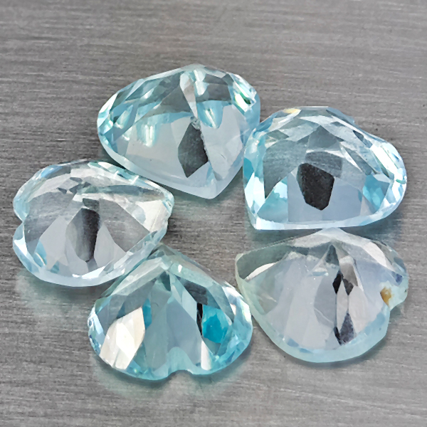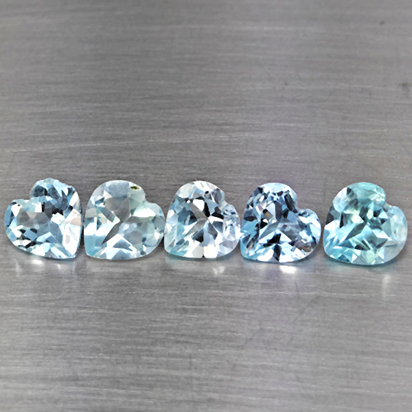 Natural Baby Blue Topaz 4.15 Ct. 5 Pcs Heart Shape Gemstones From Brazil