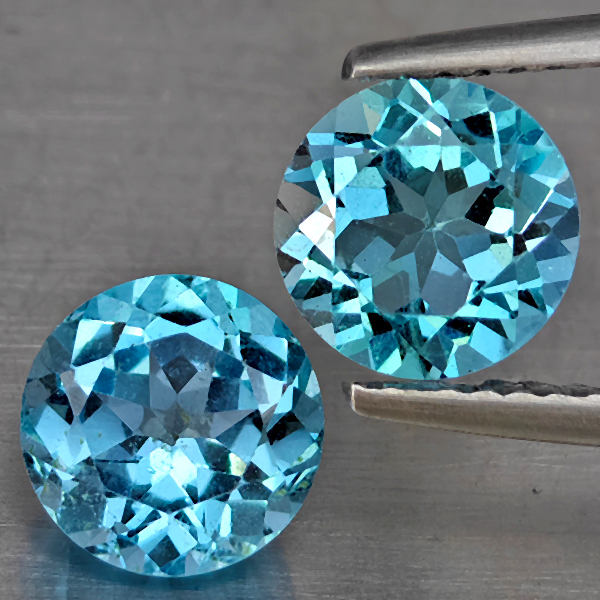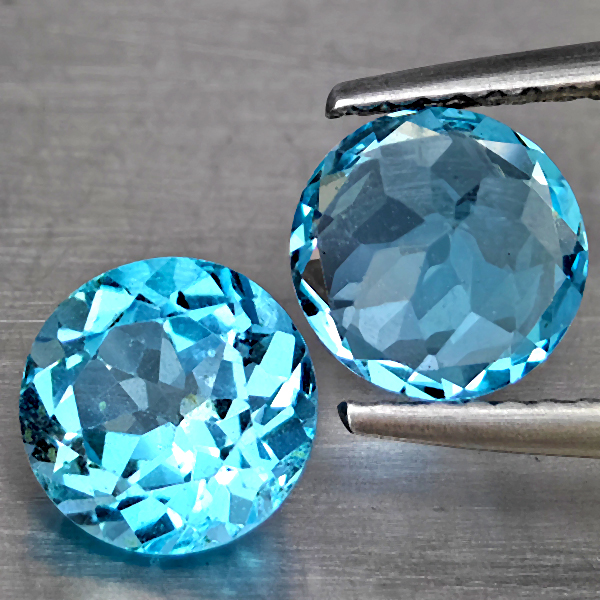 Natural Swiss Blue Topaz 3.02 Ct. 2 Pcs Round Shape 7.1 Mm Gemstone from Brazil