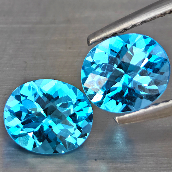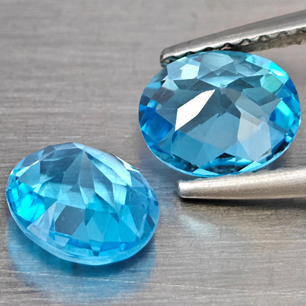 Natural Swiss Blue Topaz 2.61 Ct. 2 Pcs Oval Shape 7.4 x 6.3 Mm Gemstone from Brazil