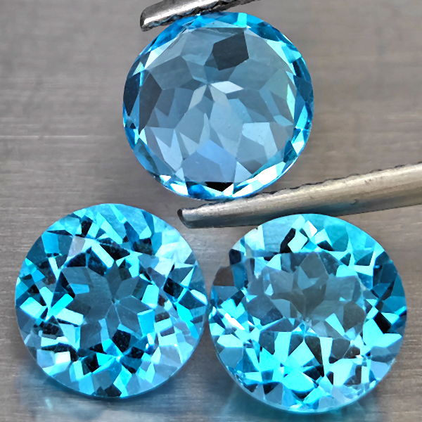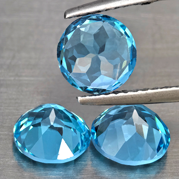 Natural Swiss Blue Topaz 4.92 Ct. 3 Pcs Round Shape 7.3 Mm Gemstone from Brazil