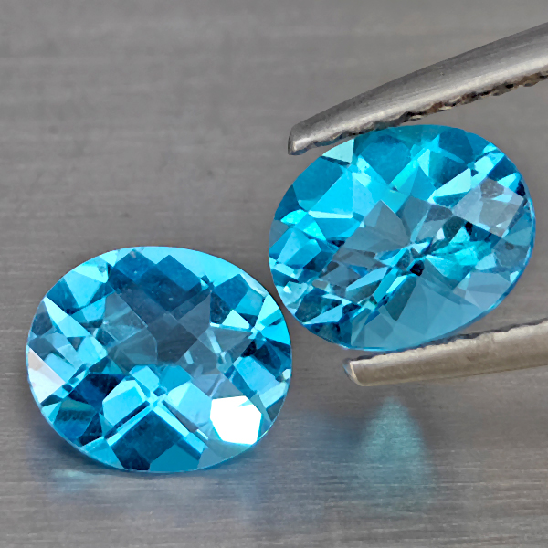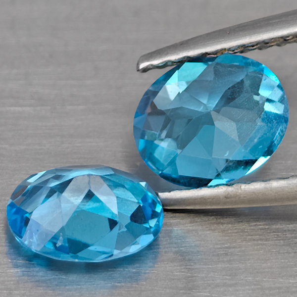Natural Swiss Blue Topaz 2.18 Ct. 2 Pcs Oval Shape 7.3 x 6.1 Mm Gemstone from Brazil