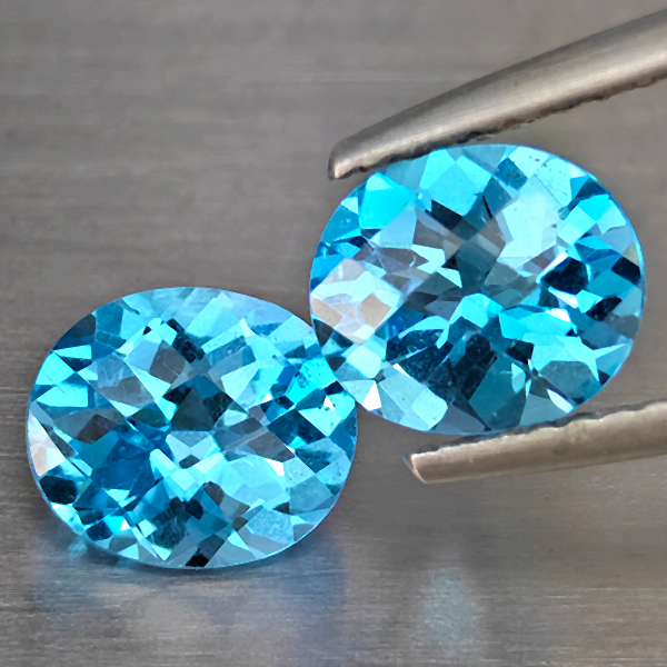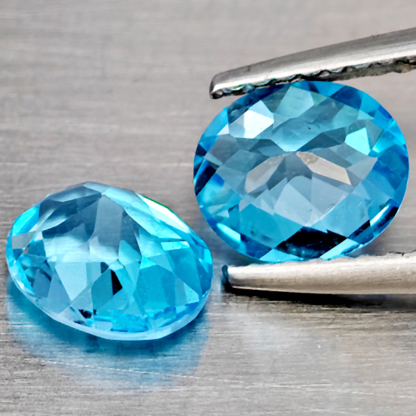 Natural Swiss Blue Topaz 2.51 Ct. 2 Pcs Oval Shape 7.3 x 6.1 Mm Gemstone from Brazil