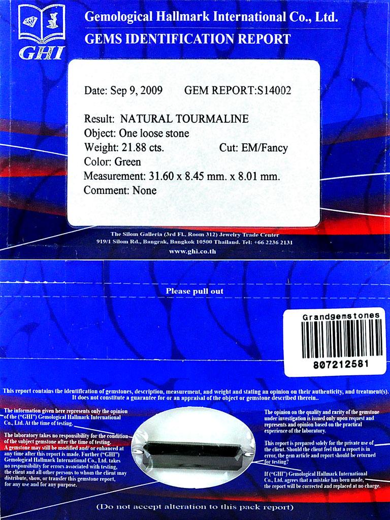 Certified 21.88 Ct. Clean Natural Green Tourmaline Gem