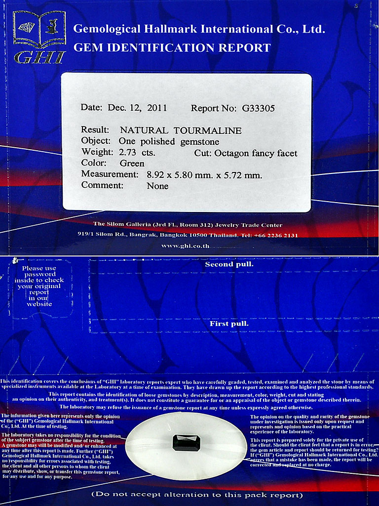Certified 2.73 Ct. Clean Octagon Natural GreenTourmaline Nigeria
