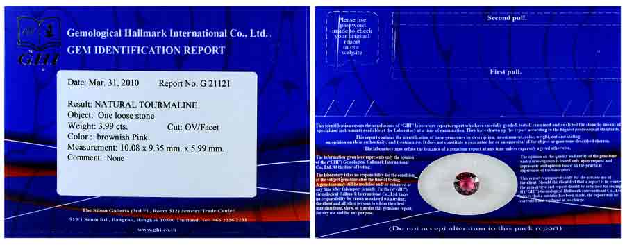 Certified 3.99Ct Clean Natural Brownish Pink Tourmaline