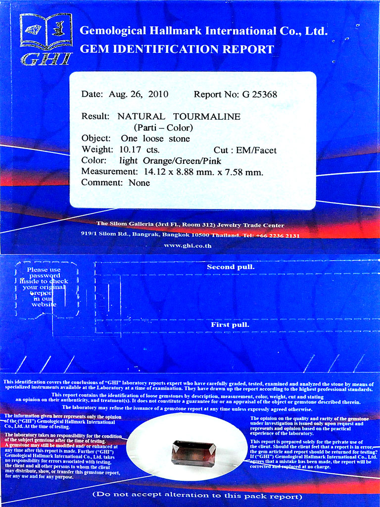Certified 10.17 Ct. Clean Octagon Natural Bi Color Tourmaline Unheated