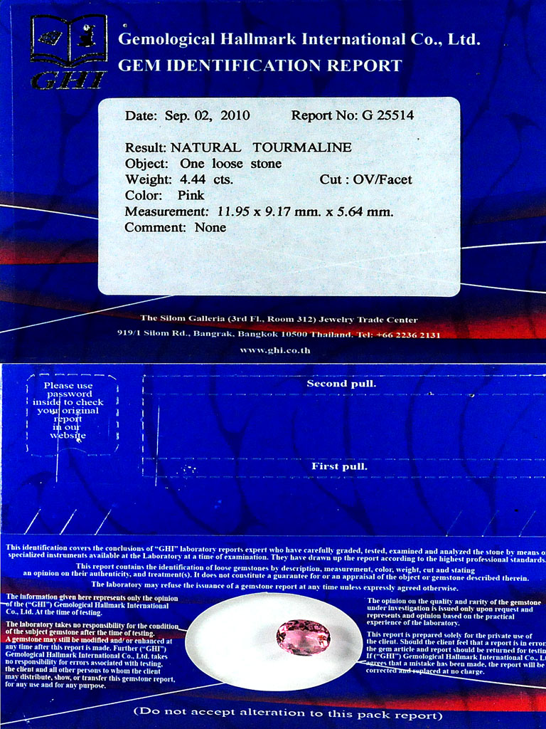 Certified 4.44 Ct. Natural Pink Mozambique Tourmaline Mozambique