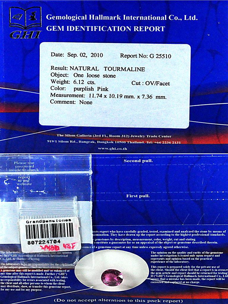 Certified 6.12 Ct. Oval Natural Purplish Pink Tourmaline Mozambique