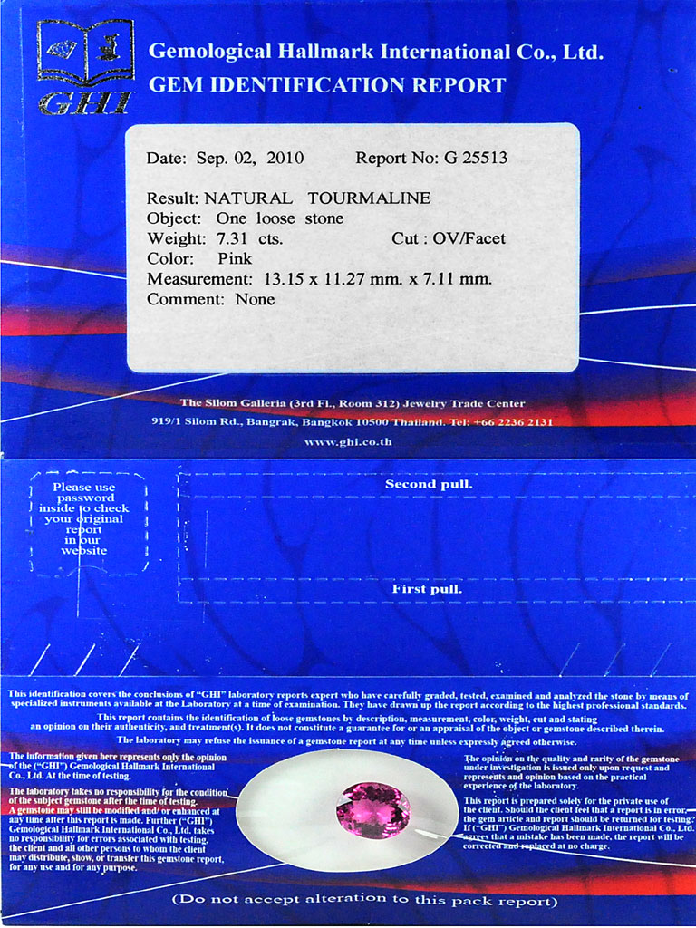 Certified 7.31 Ct. Natural Pink Tourmaline From Nigeria Unheated