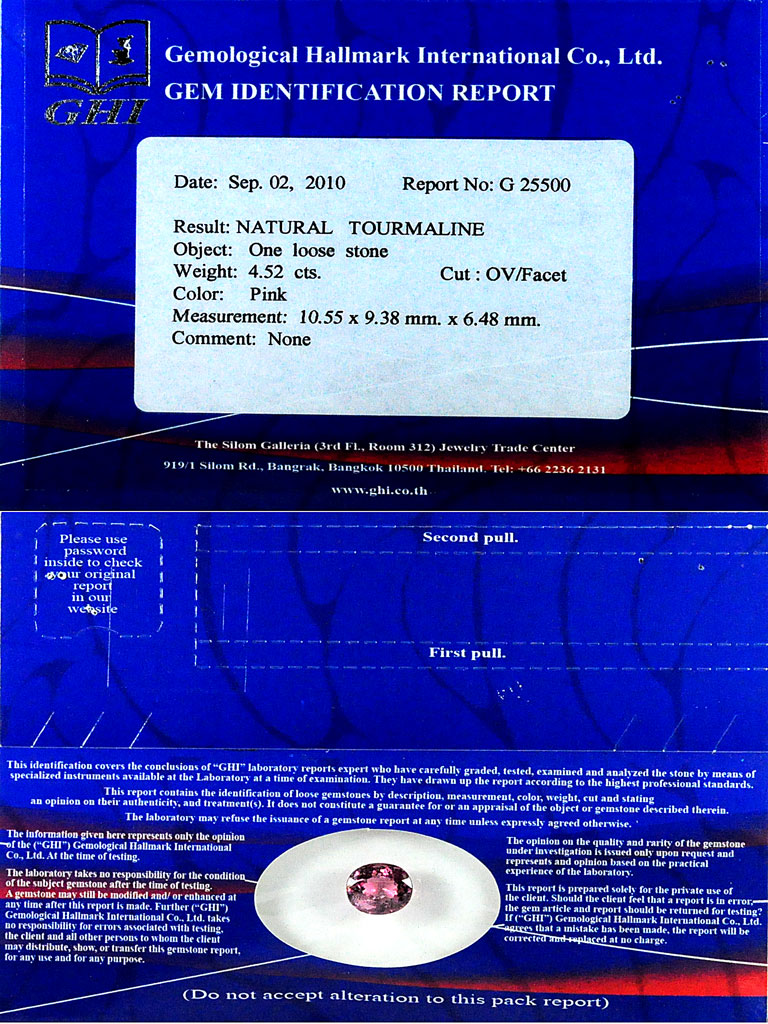 Certified 4.52 Ct. Oval Natural Pink Tourmaline Nigeria