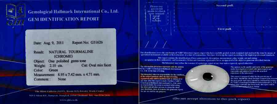 Certified 2.10 Ct Clean Natural Green Chrome Tourmaline