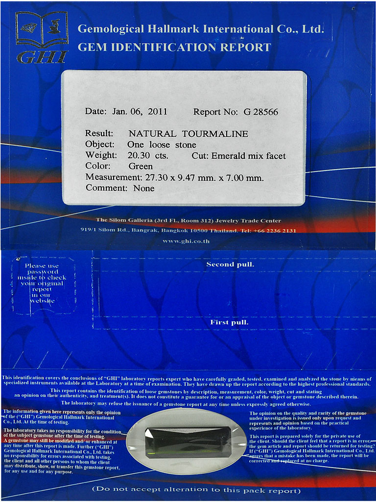 Certified 20.30 Ct. Natural Green Tourmaline Gemstone Octagon Shape