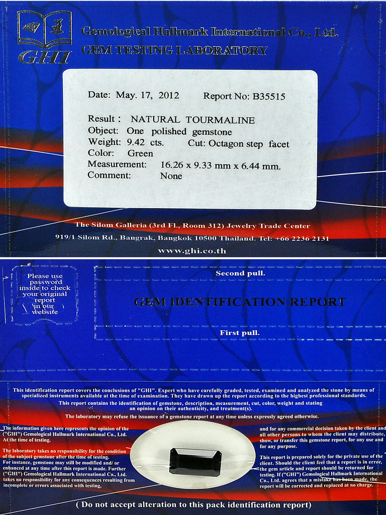 Certified 9.42 Ct. Octagon Shape Natural Green Tourmaline Nigeria
