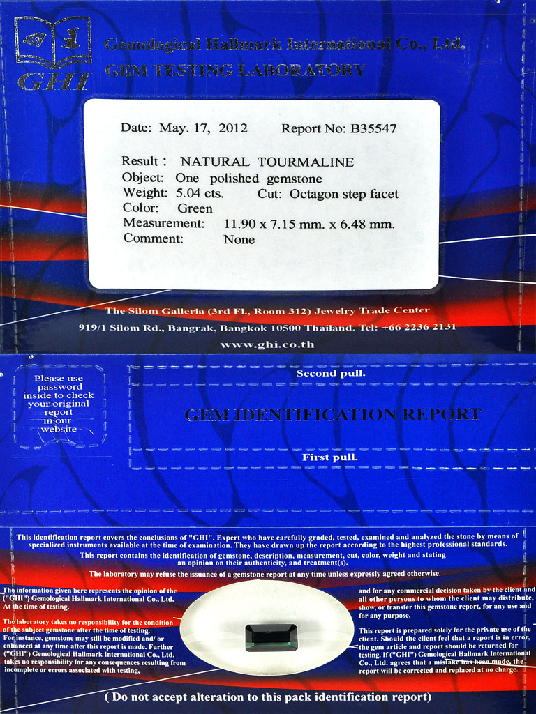Certified 5.04 Ct. Clean Natural Gem Green Tourmaline Octagon Shape