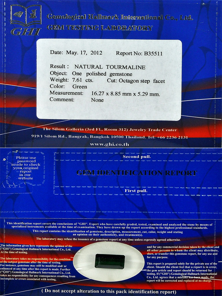 Certified 7.61 Ct. Clean Natural Green Tourmaline Octagon Shape From Nigeria