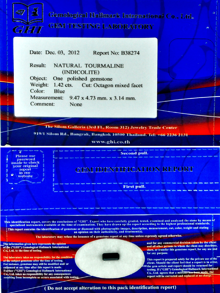 Certified 1.42 Ct. Natural Blue Indicolite Tourmaline Gemstone