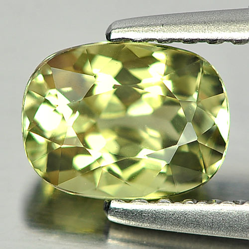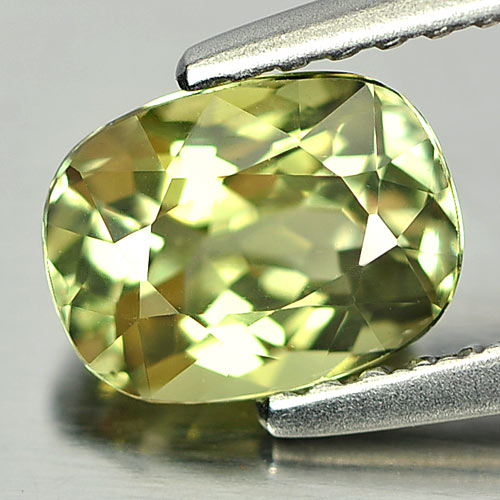 Yellowish Green Tourmaline 1.08 Ct. VVS Cushion Shape 7 x 5.4 Mm. Natural Gem