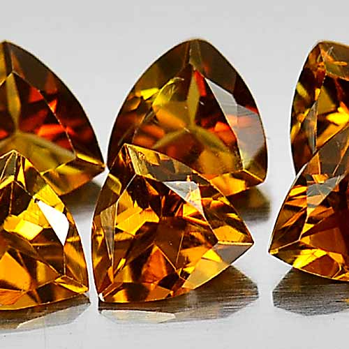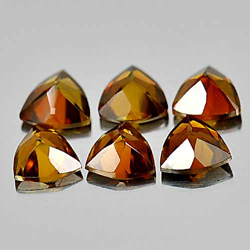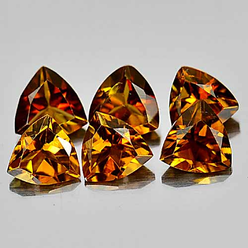 Yellow Brown Tourmaline 1.33 Ct. 6 Pcs. Trilliant 4.2 Mm. Natural Gemstones