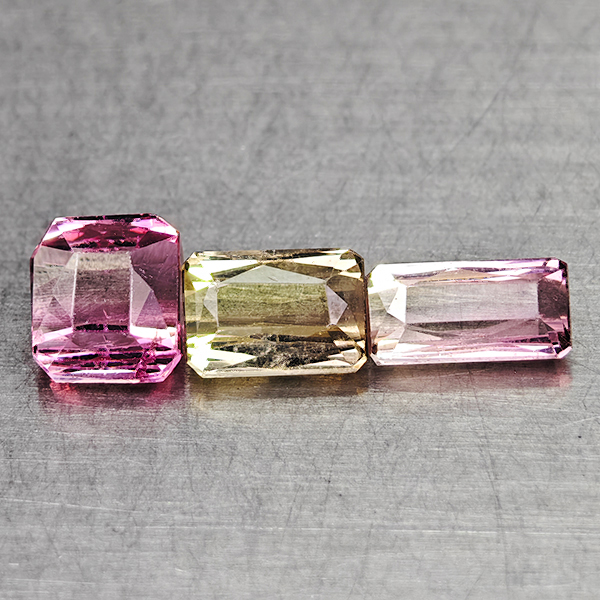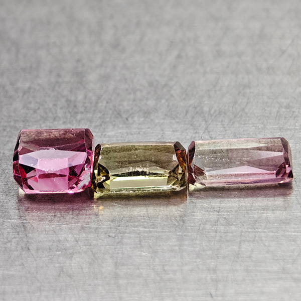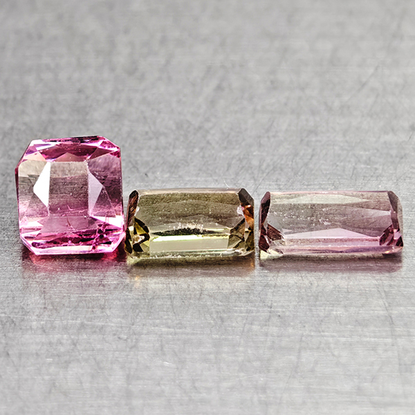 Natural Party Color Pink Tourmaline 2.07 Ct. 3 Pcs Octagon Shape 6.4 x 3.3 Mm
