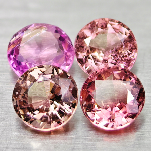 Natural Party Color Pink Tourmaline 1.72 Ct. 4 Pcs Round Shape 4.8 Mm Gems