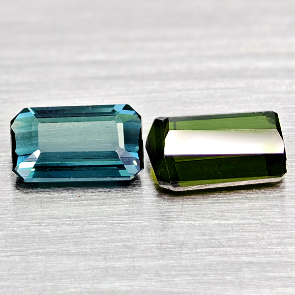 Natural Green Blue Tourmaline 1.40 Ct. 2 Pcs Octagon Shape Gemstones
